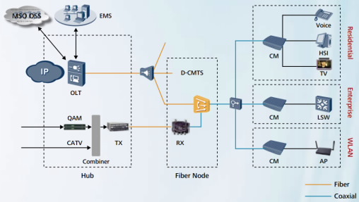 SmartAX MA5633 в основном используется в пассивной оптической сети (PON) + распределенная сеть CMTS (D-CMTS) для MSO, которая подключается к коаксиальной кабельной распределенной сети с помощью РЧ-порта в восходящем направлении и подключается к OLT с помощью PON-порта в восходящем направлении. Такой сетевой режим поддерживает доступ в здание 1000 Mбит/с и доступ 100 Mбит/с к дому пользователя. Таким образом, сеть может предоставлять интегрированные услуги, включая видео и голосовые услуги, для которых необходима высокая пропускная способность. Сеть поддерживает традиционный доступ для домашних пользователей, а также новые услуги, такие как доступ к корпоративной VPN и обратную передачу в "горячих участках", обеспечивая тем самым выполнение различных сценариев MSO.