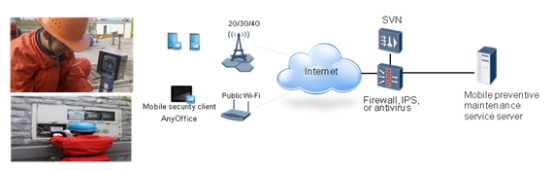 Кроме того, AnyOffice распознает режим доступа. При взаимодействии с корпоративным шлюзом мобильного безопасного доступа SVN (SVN имеет функции SSL VPN и Radius Proxy), AnyOffice может интеллектуальным образом менять политику безопасности в зависимости от местоположения пользователя (Интранет или Интернет), предоставляя голосовой интерфейс для пользователя.