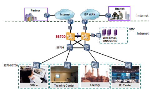 S6700 имеет ведущие в отрасли характеристики и предоставляет 24 или 48 портов 10GE с линейной скоростью. Коммутатор может использоваться в центре обработки и хранения данных, для предоставления доступа 10 Гбит/с к серверам, или использоваться как базовый коммутатор в сетях кампусного типа, для обеспечения агрегирования трафика 10 Гбит/с. Кроме того, S6700 предоставляет богатый спектр услуг, всесторонние политики безопасности и различные функции QoS, чтобы помочь клиентам создавать масштабируемые, управляемые, надежные и безопасные центры обработки и хранения данных.