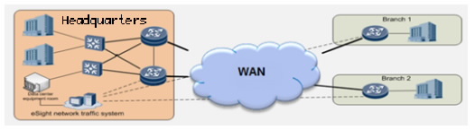 eSight Network Traffic Analyzer enables NetStream on an enterprise's WAN-link device interfaces to send traffic information to the eSight Network Traffic Analyzer. eSight NTA provides the following functions in this scenario: