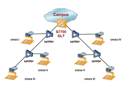 The S7700 can function as an optical line terminal (OLT), with a maximum transmission distance of 20 km and an optical split ratio of 1:64. It can work with 1:2 or 5:95 low-attenuation optical splitters to provide surveillance services on highways, railways, roads in cities, and factories of manufacturing enterprises.
