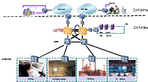 The S6700 can function as a core switch on a campus network and provide high-density line-speed 10GE ports, rich service features, and comprehensive security mechanism. This makes the S6700 cost effective on campus network.