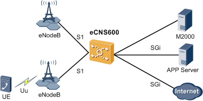 The eCNS600 integrates the authentication management functions of the SAE-HSS, the MME functions, and the S-GW/P-GW functions. Installed in a basic subrack, the eCNS600 implements the EPC functions and has the following features:
