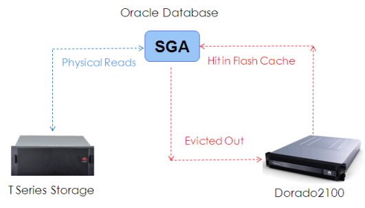 In the scenario of more read and less write, for Oracle 11g R2 running on Oracle Enterprise Linux or Solaris, the combination of Oracle Smart Flash Cache function with Huawei Dorado2100solid state hard disk array can accelerate the reading of hot data.