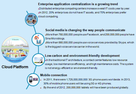 - Customer Challenges: The contact center must be capable of meeting different customers' capacity requirements, have high reliability, and support unified multimedia routing.